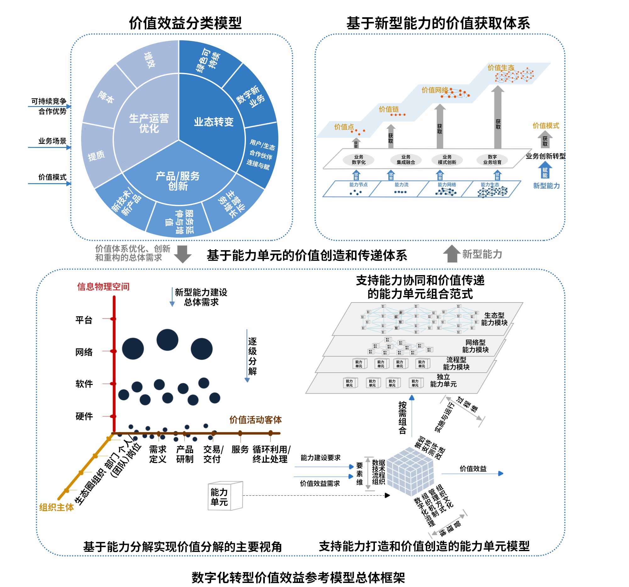 該標(biāo)準(zhǔn)從價(jià)值效益分類模型、基于能力單元的價(jià)值創(chuàng)造和傳遞體系以及基于新型能力的價(jià)值獲取體系三個(gè)方面,系統(tǒng)的闡釋以價(jià)值效益為導(dǎo)向,將價(jià)值效益要求貫穿數(shù)字化轉(zhuǎn)型全過程的方法機(jī)制。