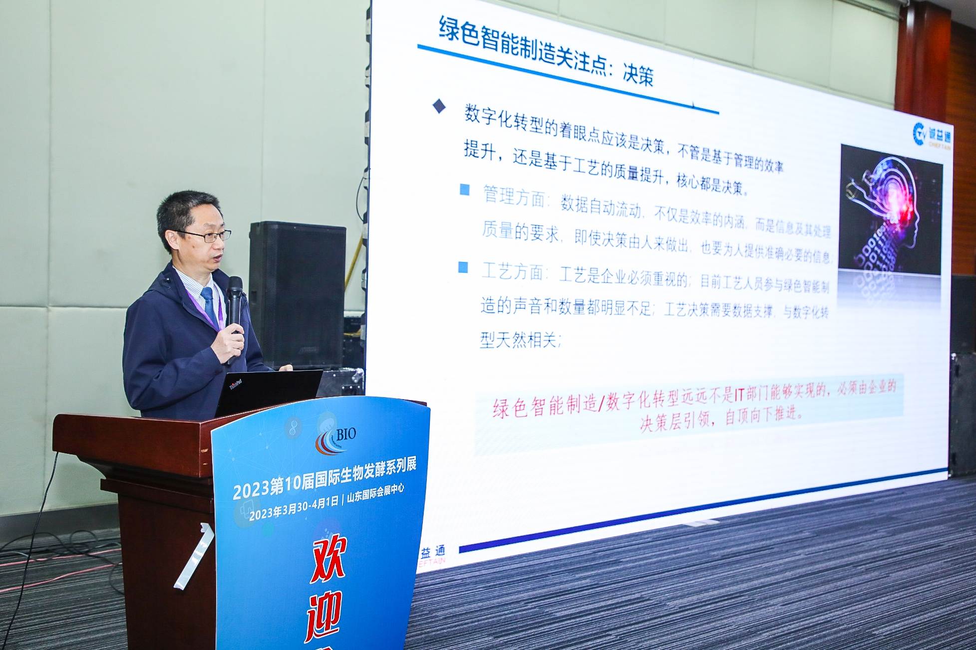 “創新引領,助力健康”。2023年3月29日-4月1日,“中國生物發酵產業大會暨生物發酵營養健康產業系列高峰論壇”在山東濟南隆重召開。在“全國生物發酵行業綠色低碳與裝備創新分論壇”上,北京誠益通控制工程科技股份有限公司何濱總發表了“信息化與自動化融合推動生物發酵行業低碳綠色發展”的主旨演講。