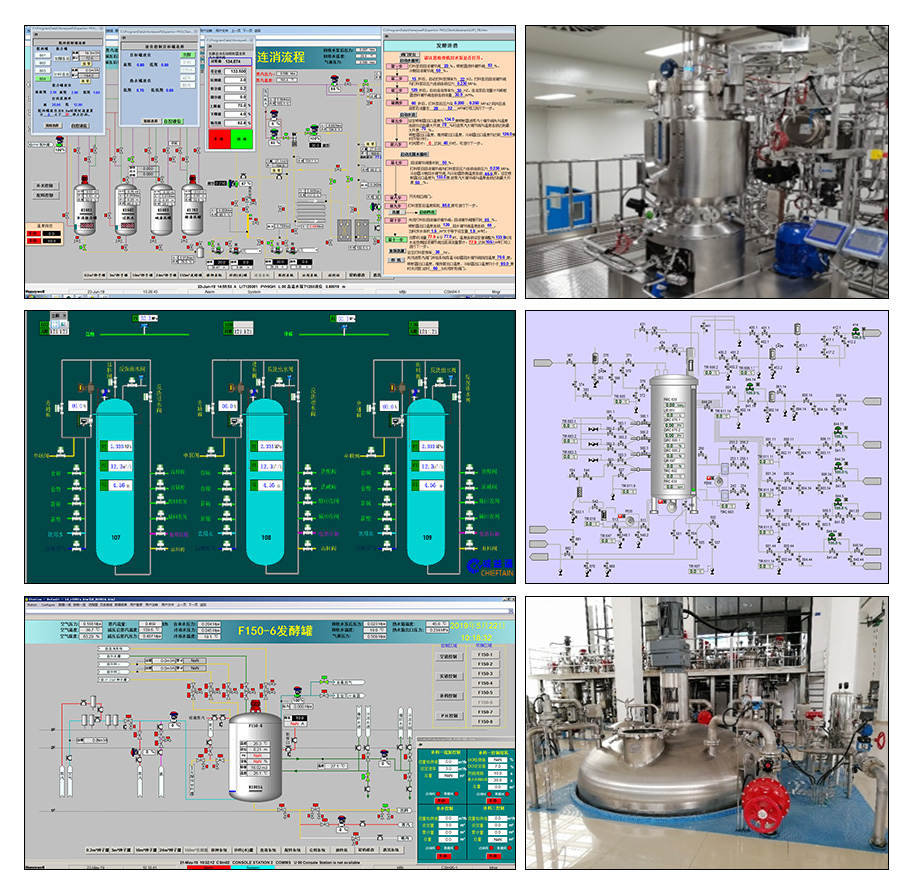 通過對發酵流程中實消、空消、保壓、移種、倒種、放料等單元實現一鍵自動化;并結合對發酵過程中常規各類參數和部分生化參數進行檢測和控制,有效地提高發酵單位和提升產品質量。