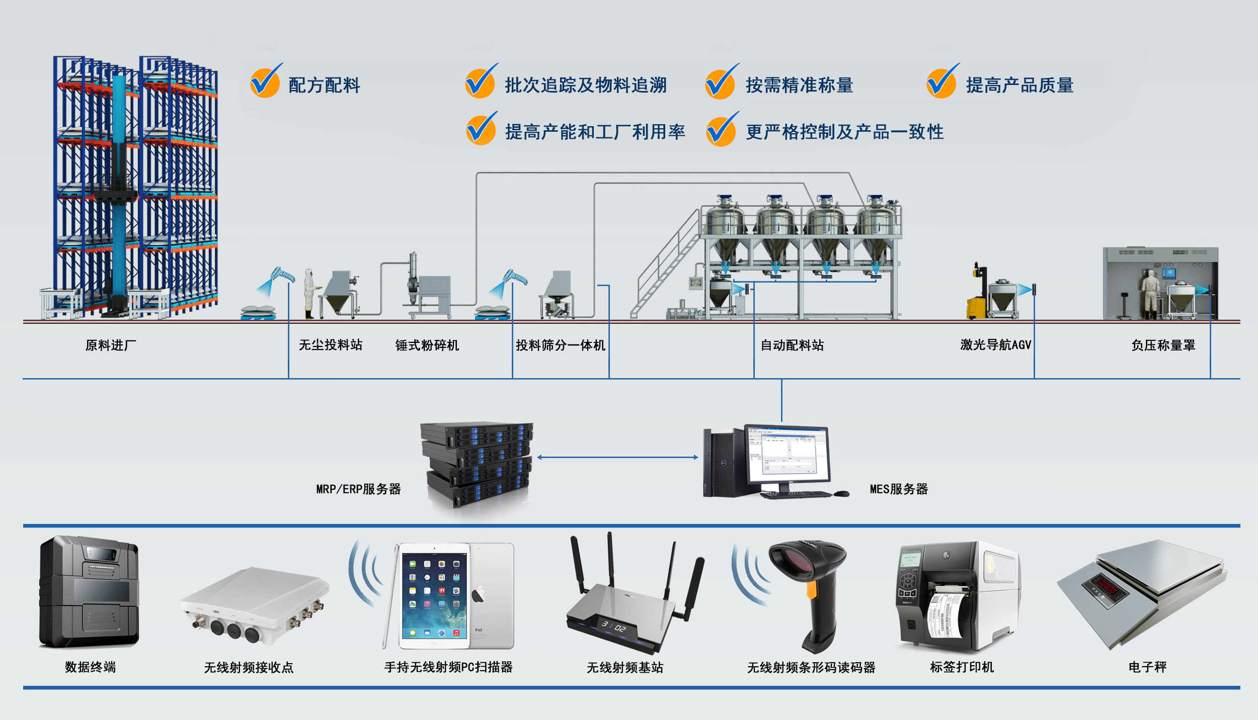 2、智能化物料稱配中心