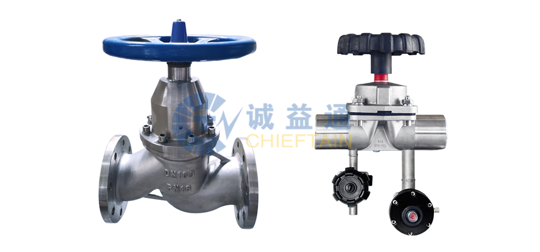 隔膜式截止閥膜片是公司專利產品,在隔膜中部設有安裝孔,隔膜內部有剛性骨架,隔膜材料為聚四氟乙烯,耐高溫消毒,拉伸性能及密封性能好,性價比高,因此被廣泛應用于奶制品行業及耐酸堿要求的生產過程控制領域,是生化制藥行業的優選產品。